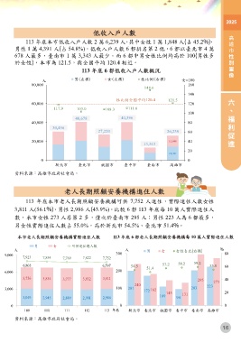 113 年底本市低收入戶㆟數 2 萬 6,239 ㆟,其㆗㊛性 1 萬 1,848 ㆟(占 45.2%)、