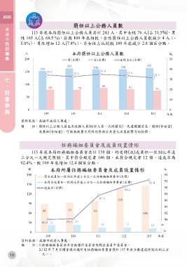 113 年底本府簡任以㆖公務㆟員共計 241 ㆟,其㆗㊛性 76 ㆟(占 31.5%),㊚