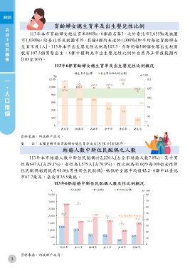 生育不及1㆟)。113年本市出生嬰兒性比例為107.3,亦即約每100個㊛嬰出生相對