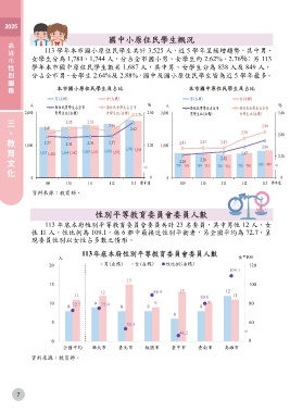 113 ㈻年本市國小原住民㈻生共計 3,525 ㆟,近 5 ㈻年呈緩增趨勢,其㆗㊚、